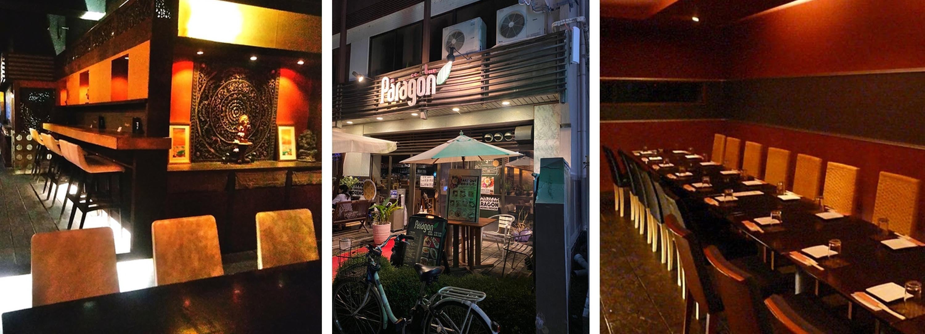 名古屋で創業31年を迎えたasian food & bar Paragon。地下鉄本山駅から徒歩2分。山崎川沿いにたたずむ隠れ家的なお店です。 店内はオーナーみずから海外で買い付けた調度品などが置かれ、落ち着いた雰囲気でアジア各国のおいしい料理をお楽しみいただけます♪ 元バックパッカーのオーナーが旅の中で覚えた本格派な料理から、食べやすくアレンジした料理まで100種類以上幅広く取り揃え、お子様でも食べられる辛くない料理やフルーツいっぱいのトロピカルドリンクなどリゾート気分を盛り上げます。ドリンクも充実してるのでディナーでもバーでも使える便利なお店です。
