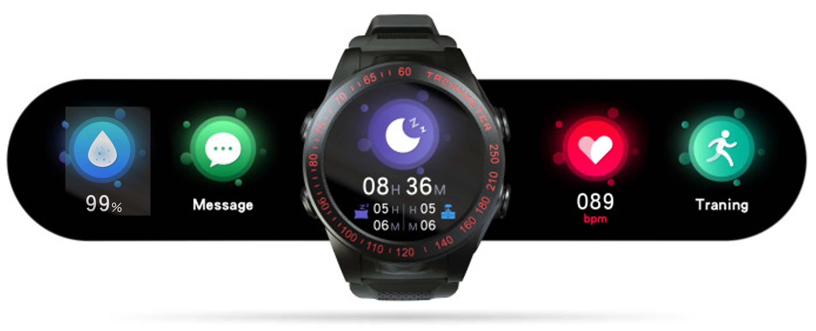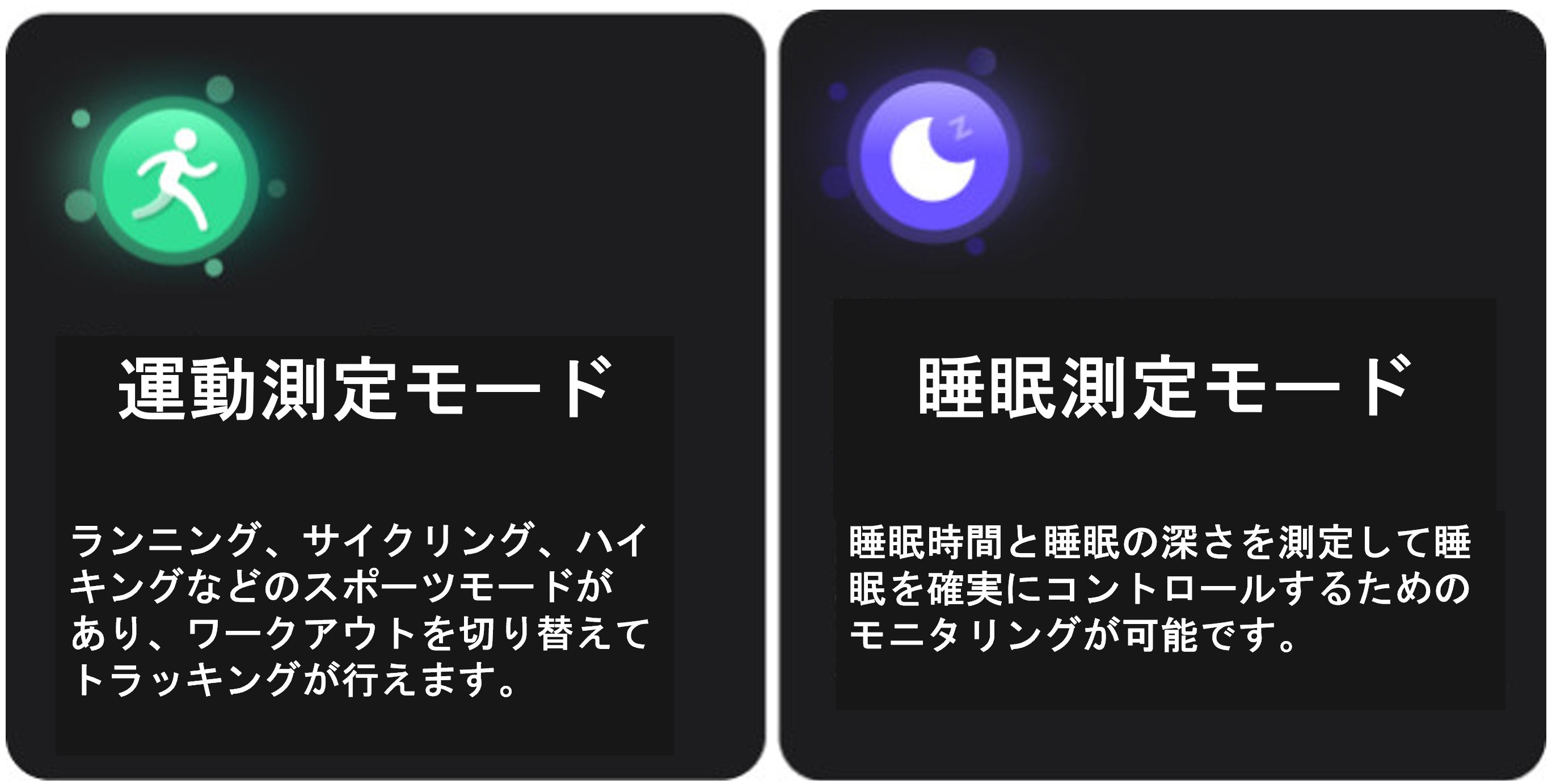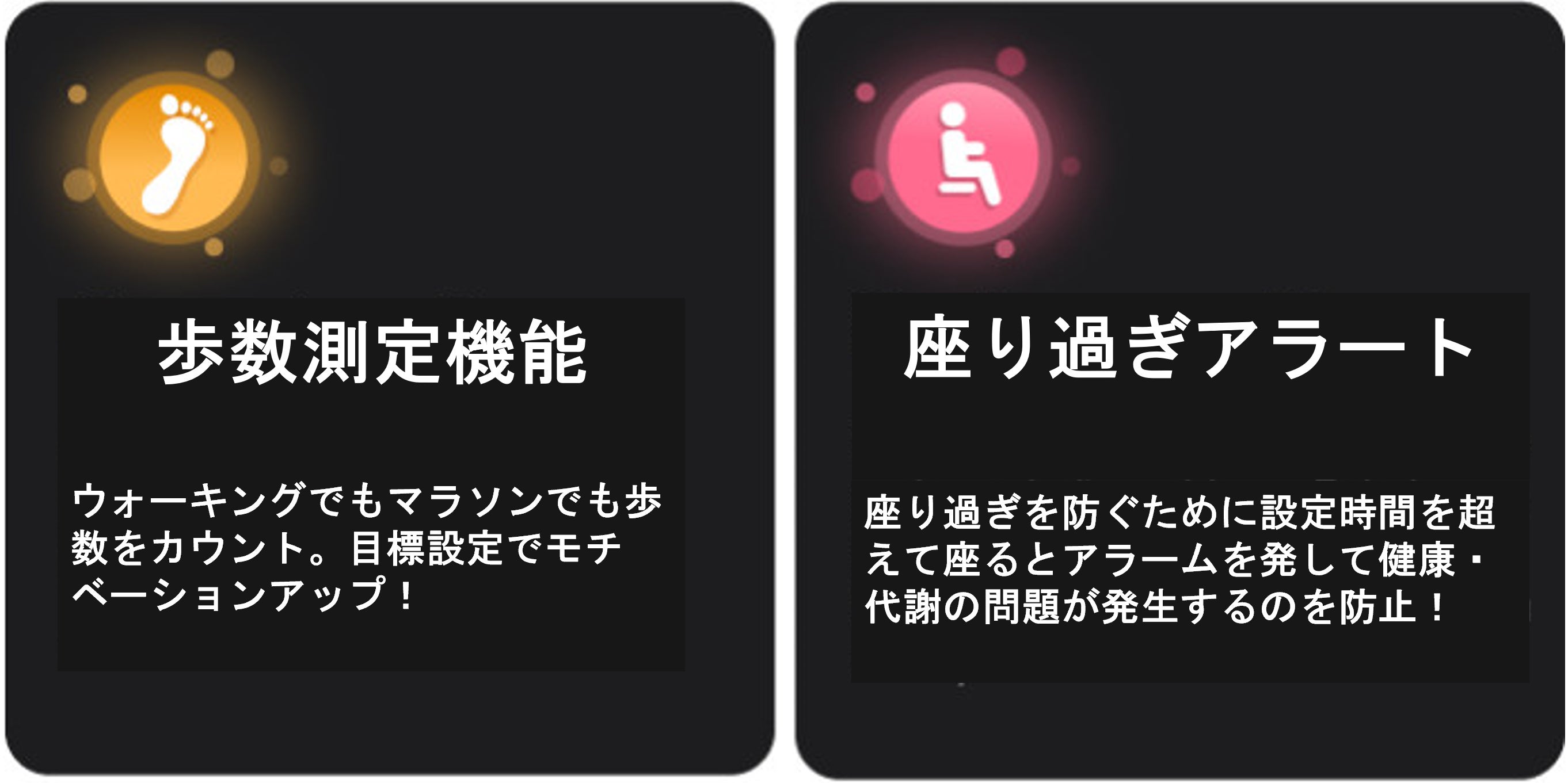 モニター、心拍数、睡眠モニター、座り過ぎアラートがあります。