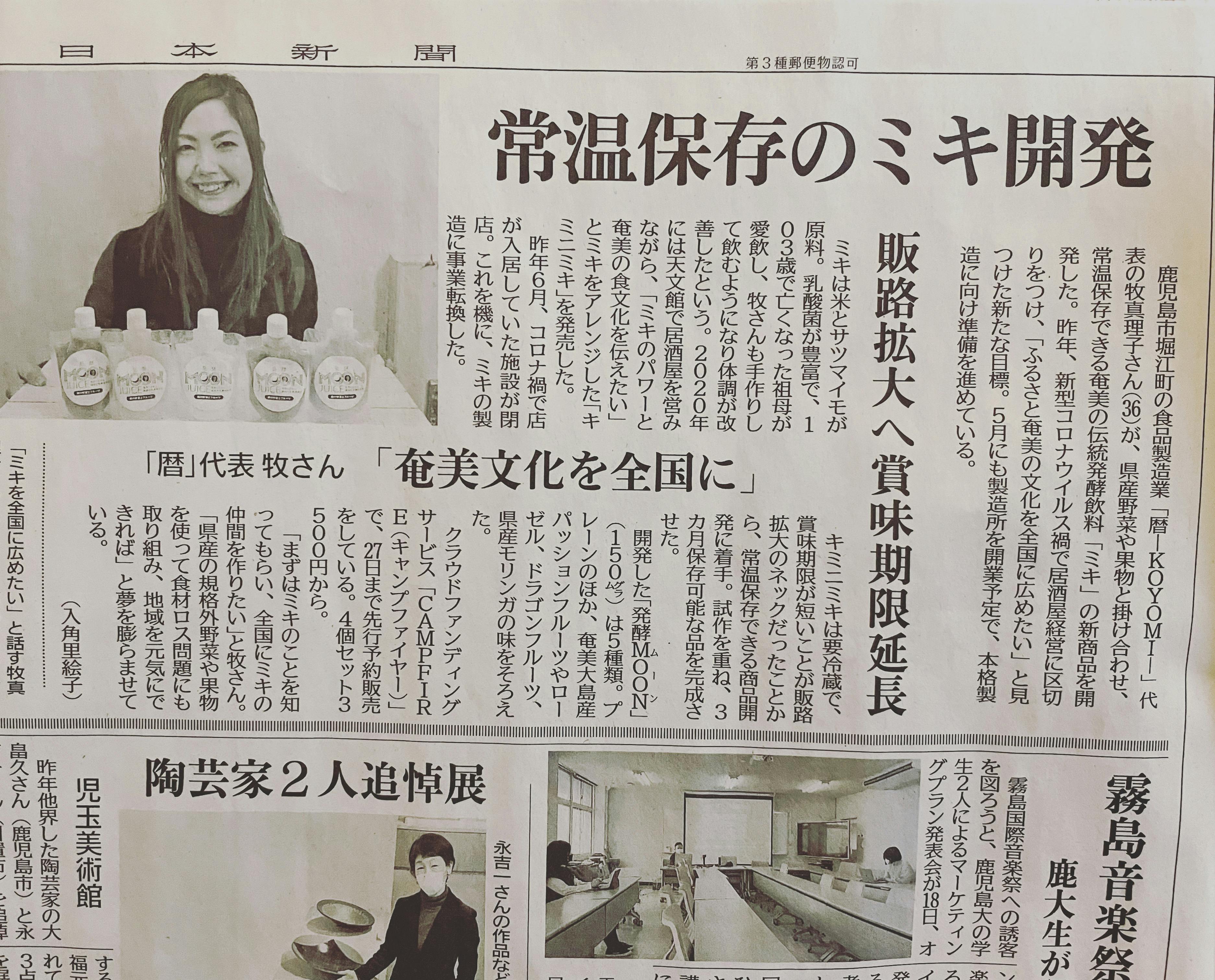 私は去年から鹿児島市の「ポタジェファム」という女性農業者グループに農産加工の分野で参加してるのですが、そちらで以前お会いした事のある記者さんに取材して頂いて、ポタジェファムのつながりにも感謝してます!ありがとうございます。