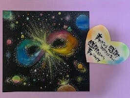 私が私らしく表現すること、大好きなパステルアートで光や宇宙の輝きを描いたり、絵本を描いたりする姿や作品から、大人も子どもも誰もが自由に自分らしく輝いて生きる事に気づいて、心や体がゆるんで笑顔が増えたらうれしいと思います。
