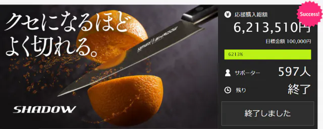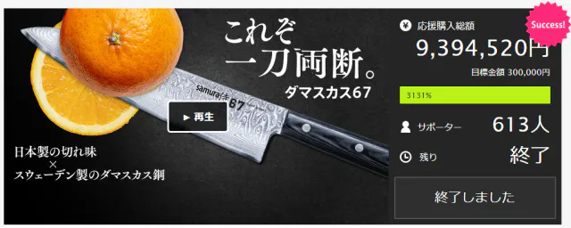 ※リターン品の配送が完了するまで、株式会社ミラソラはsamuraの日本における独占販売権を有する正規代理店です。