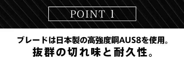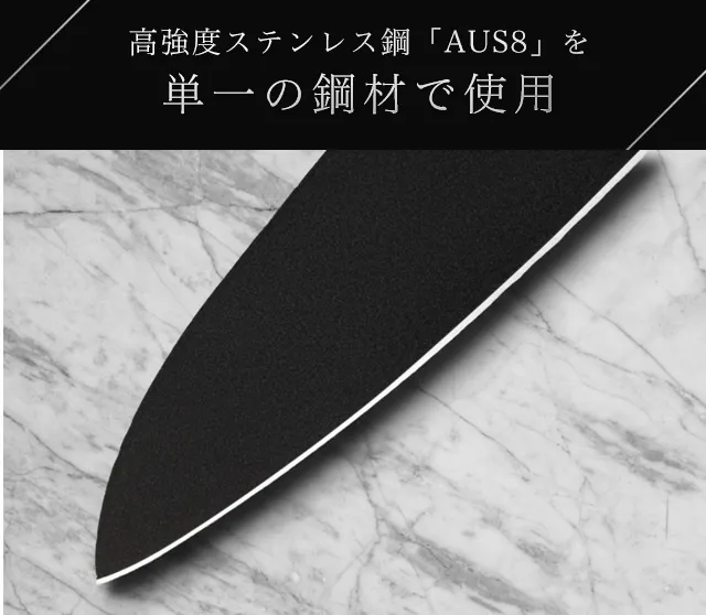 AUS8は刃物に必要な硬さと適度な粘り強さ、そして錆びにくいという3つの必要項目を全て兼ね備えた特殊金属。