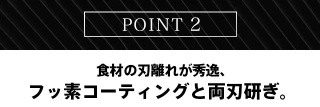 ブレードにフッ素コーティングを施すことで錆びにくくなると共に、よく切れる包丁の3要素の一つ「食材の刃離れ」が各段に良くなりました。