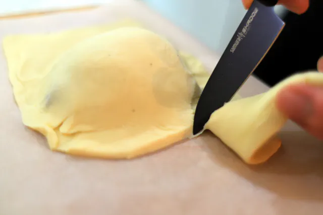 べた付いて切り難いパイ生地やお餅も楽に切り分けられます。