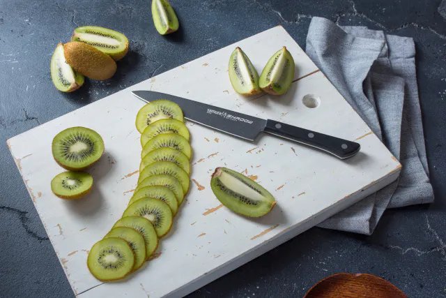 ブレードが非常に小さな包丁で、まな板を使わない野菜や果物の皮むきや芯抜き、ジャガイモの面取り、ニンニクなど香味野菜のスライスに適しています。