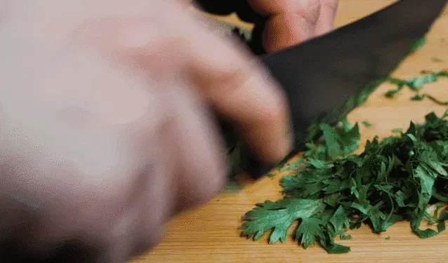 シェフナイフより刃が薄く、手元で扱いやすいため食材を薄くスライスする時に適しています。