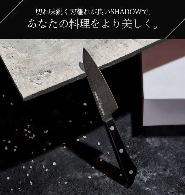 切れ味鋭く刃離れが良い【SHADOW】で、あなたの料理をより美しく。