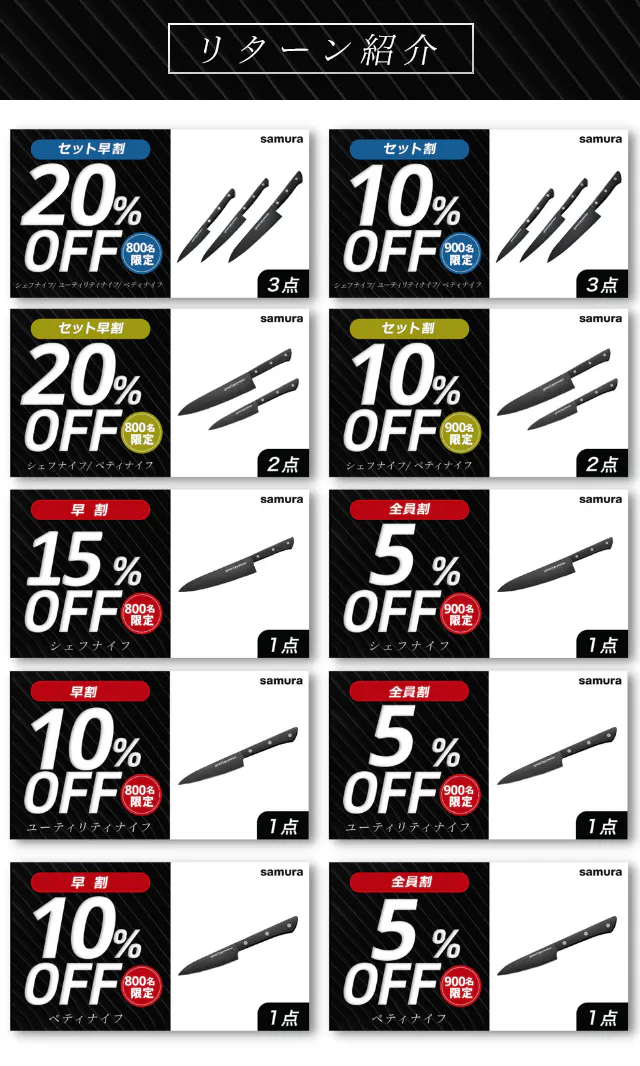 これまで日本の和包丁にインスパイアされたラトビアのナイフ職人たち“SAMURA”が作り上げたダマスカス鋼高級調理ナイフ「ダマスカス67」、黒の包丁「SHADOW」をクラウドファンディングにてご紹介させていただいたところ、大変な反響の声をいただきました。