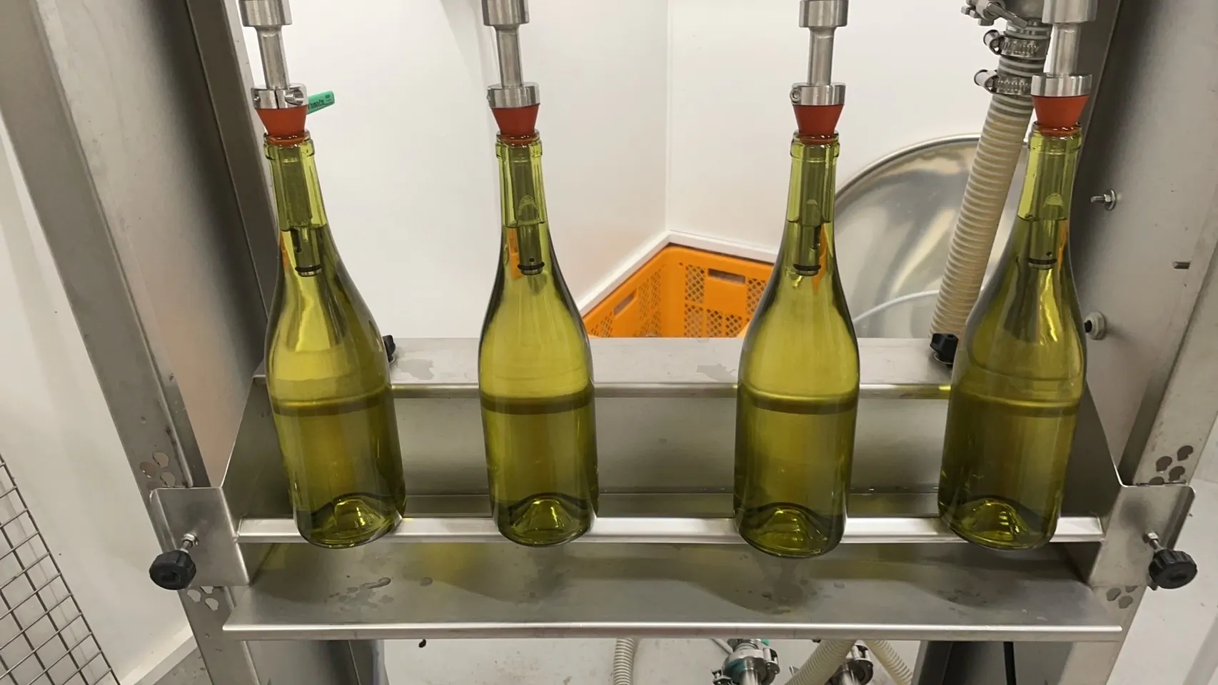そして今、②とにかく頑張れ応援してるよコース の *KIFU シャルドネ 2020* 750ml の品質をチェックし終え瓶詰め作業を進めているところです。