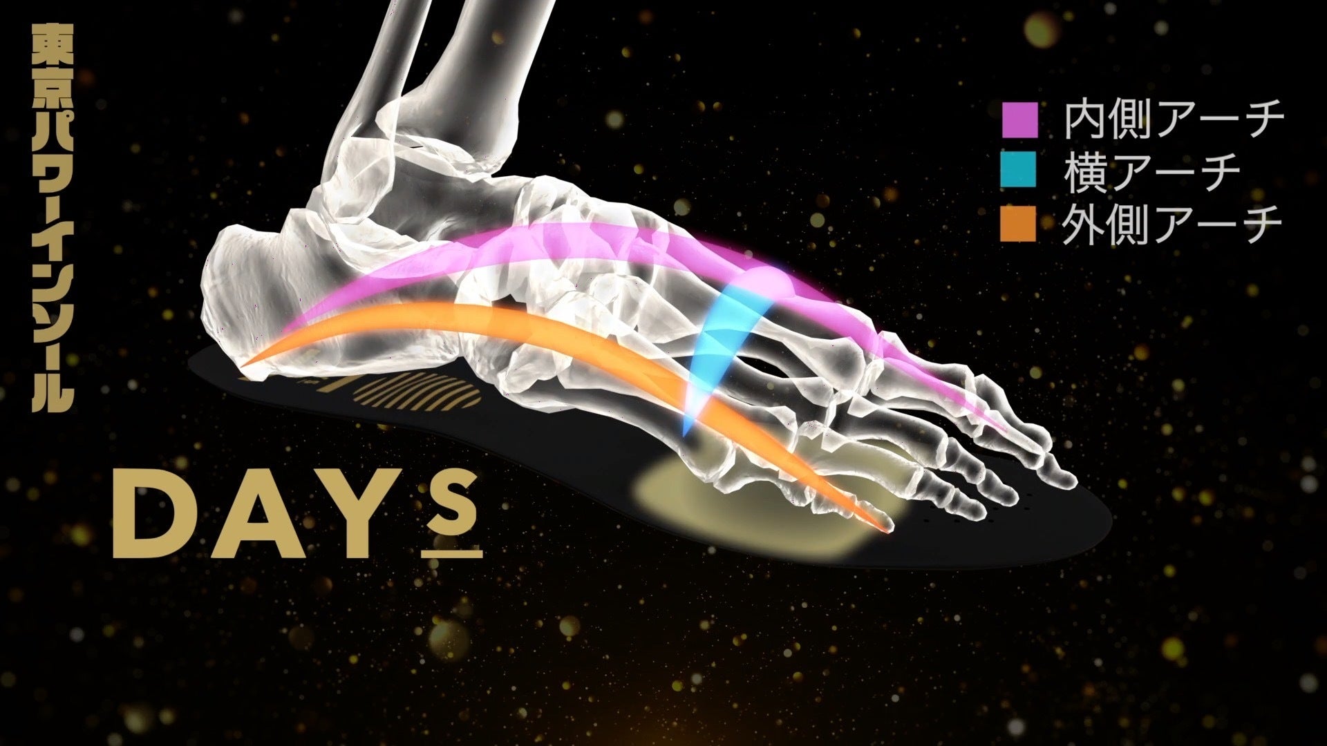 「東京パワーインソールDAYs100」には、これまでプロスポーツ選手やトップアスリートの足元を支えてきた2つの特殊技術が生かされています。