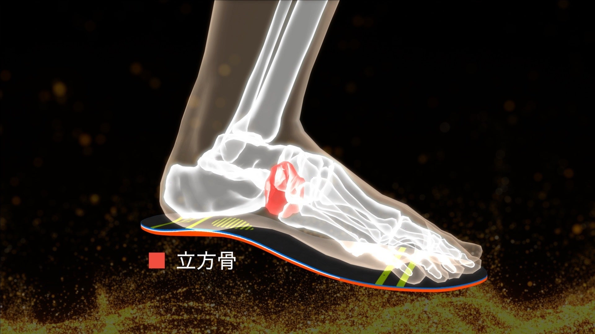 立方骨は適正な位置にあることでその機能を発揮します。生活の癖などが理由で下がってくる立方骨を理想の位置に保ち続けるように促すことがこのふくらみの働きです。
