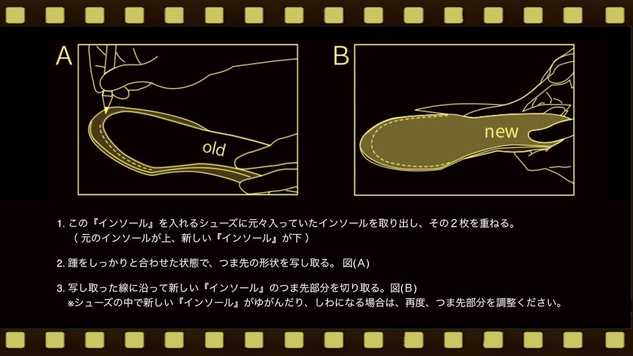 利用に際してはお手持ちのインソールのサイズに合わせてカットする事で 簡単にサイズを合わせることができます。