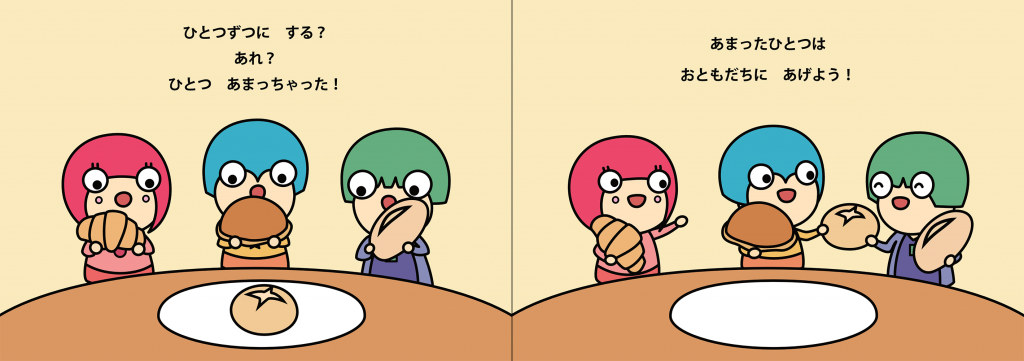 ストーリーの中で色んなパンが出てきますが、それをどうやってみんなでわけるかを考える