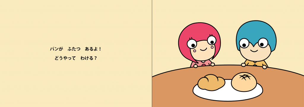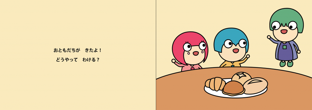こんな感じで、次々に出てくるパンの分け方を一緒に考えてみようという内容です。