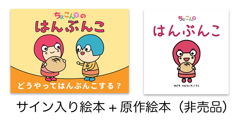 サイン入り絵本に加えて、この「ちょこんずのはんぶんこ」の元となった絵本もセットにします。