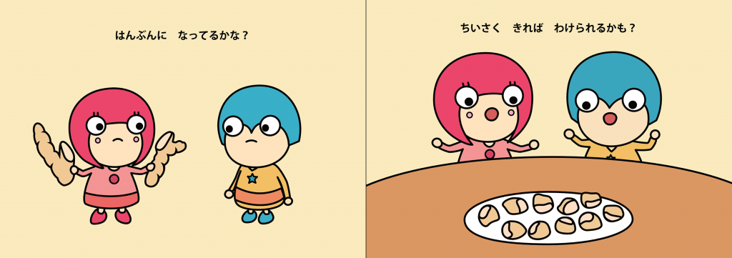 ちなみに、はんぶんこするということは誰かと一緒に分けるということです。
