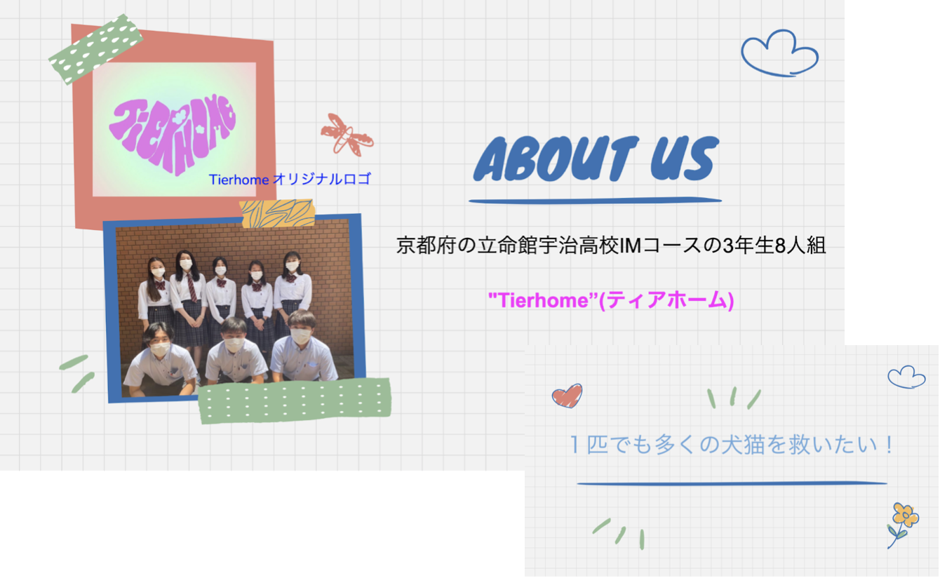私たちは京都府の立命館宇治高校IMコースの3年生8人組、”Tierhome”(ティアホーム)です!