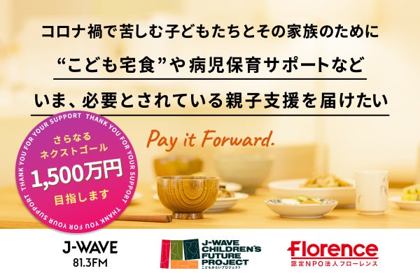 ネクストステップとして、一人でも多くの子ども達とその家族に、『こども宅食』を始めとした、いま必要な支援を届けるために、そして親子を取り巻く社会課題を解決していける社会にするために、引き続き当プロジェクトに賛同するJ-WAVEナビゲーターやアーティストと共に、1000万円のネクストゴールを目指して参ります。