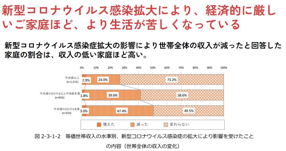 そんな状況の中を襲った、新型コロナウイルスの感染拡大という未曾有の事態は、特に経済的に厳しい状況に置かれるご家庭に大きな打撃を与えました。