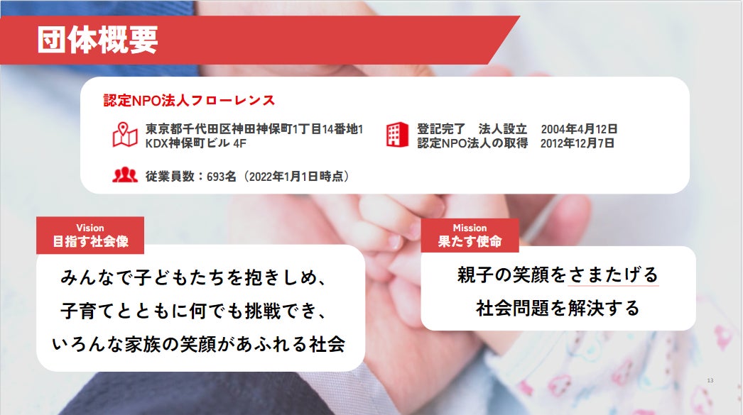 本日は今回集まった支援金の使い道について認定NPO法人フローレンスより、ご報告をさせていただきます。