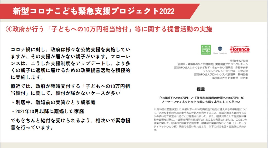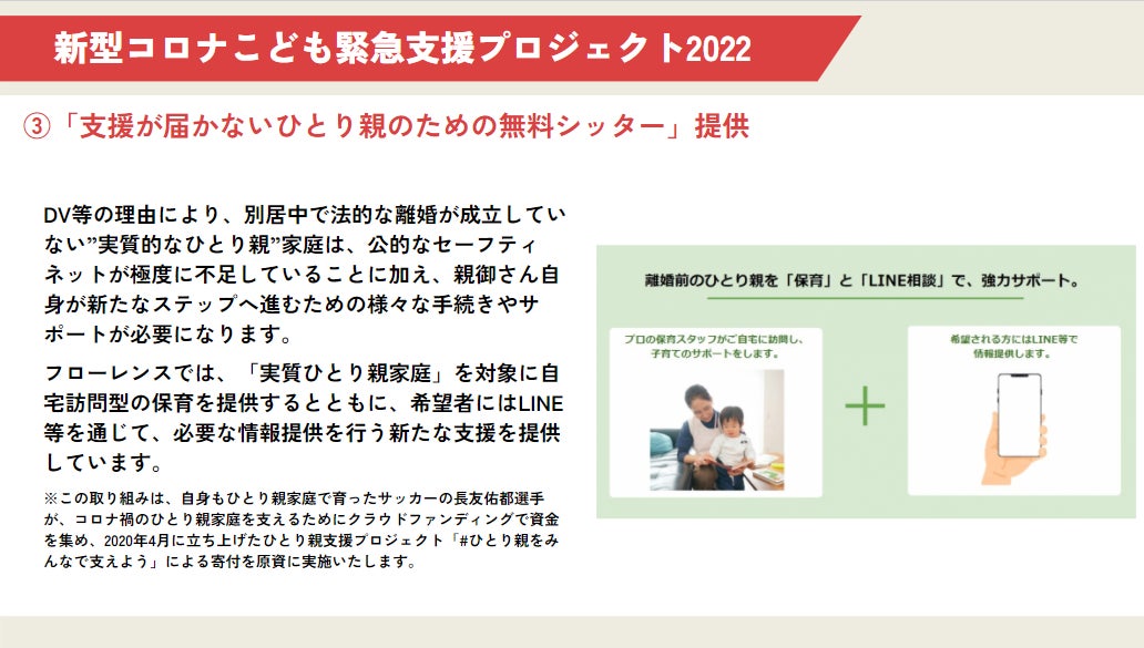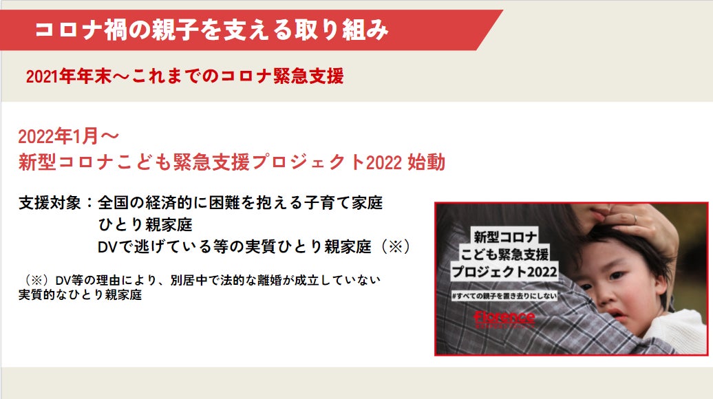 フローレンスではひとり親家庭を支援する取り組みも推進しています。