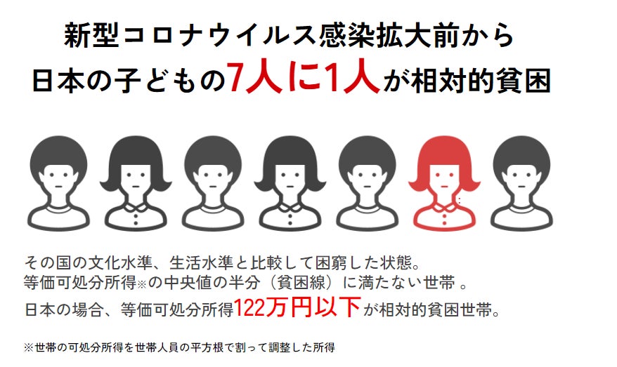 新型コロナウイルス感染拡大前より、日本の子育て家庭の貧困率は高く、国内の子どもの7人に1人が相対的貧困であるといわれていました。