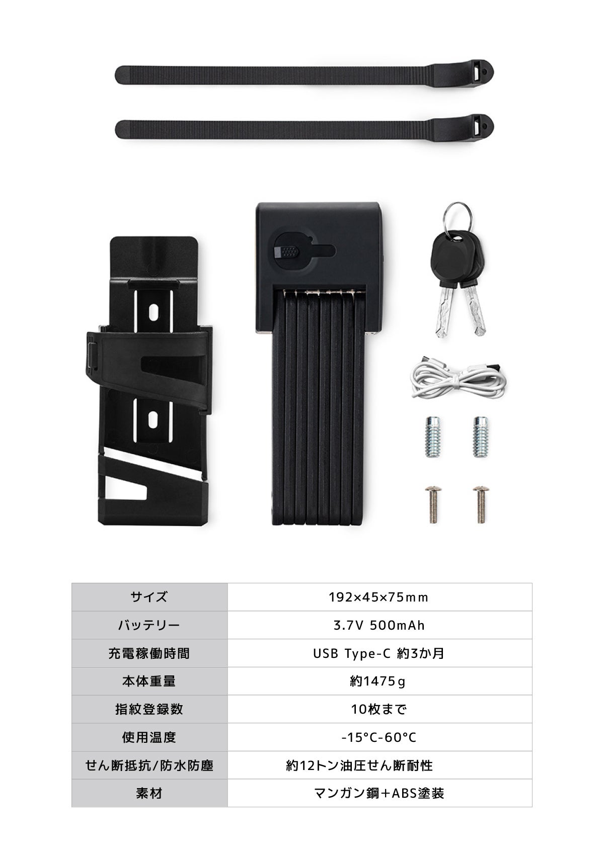 『ZALAXY ROCKY 』指紋認証折り畳み式キーレス自転車ロック