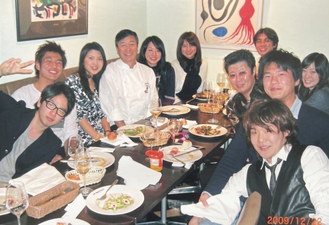 〈公私にわたり仲良くしていただいている、日本一予約の取れないイタリアンレストラン、落合シェフの店で。教え子たちと忘年会。ここの写真の皆さんは、現在、医師、弁護士、テレビ局、アナウンサーなど、いろいろな分野で活躍されています〉