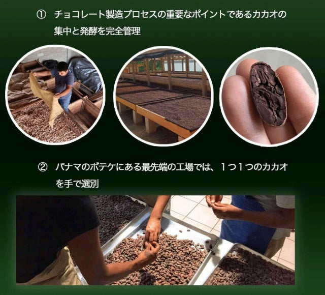 【環境的】:カカオの生産において、パナマの土壌を生かした土づくりを基本に、クリーンな農業技術で環境への負担を配慮した栽培を行っています。