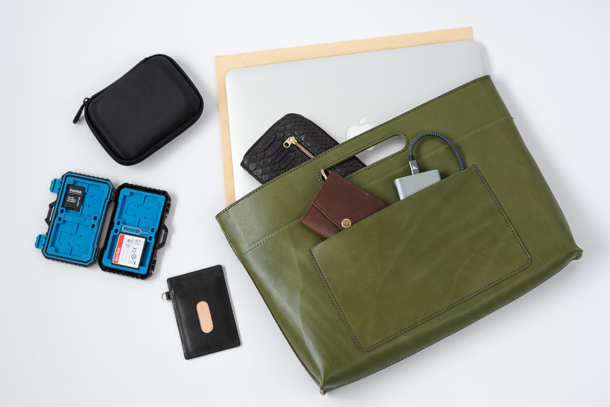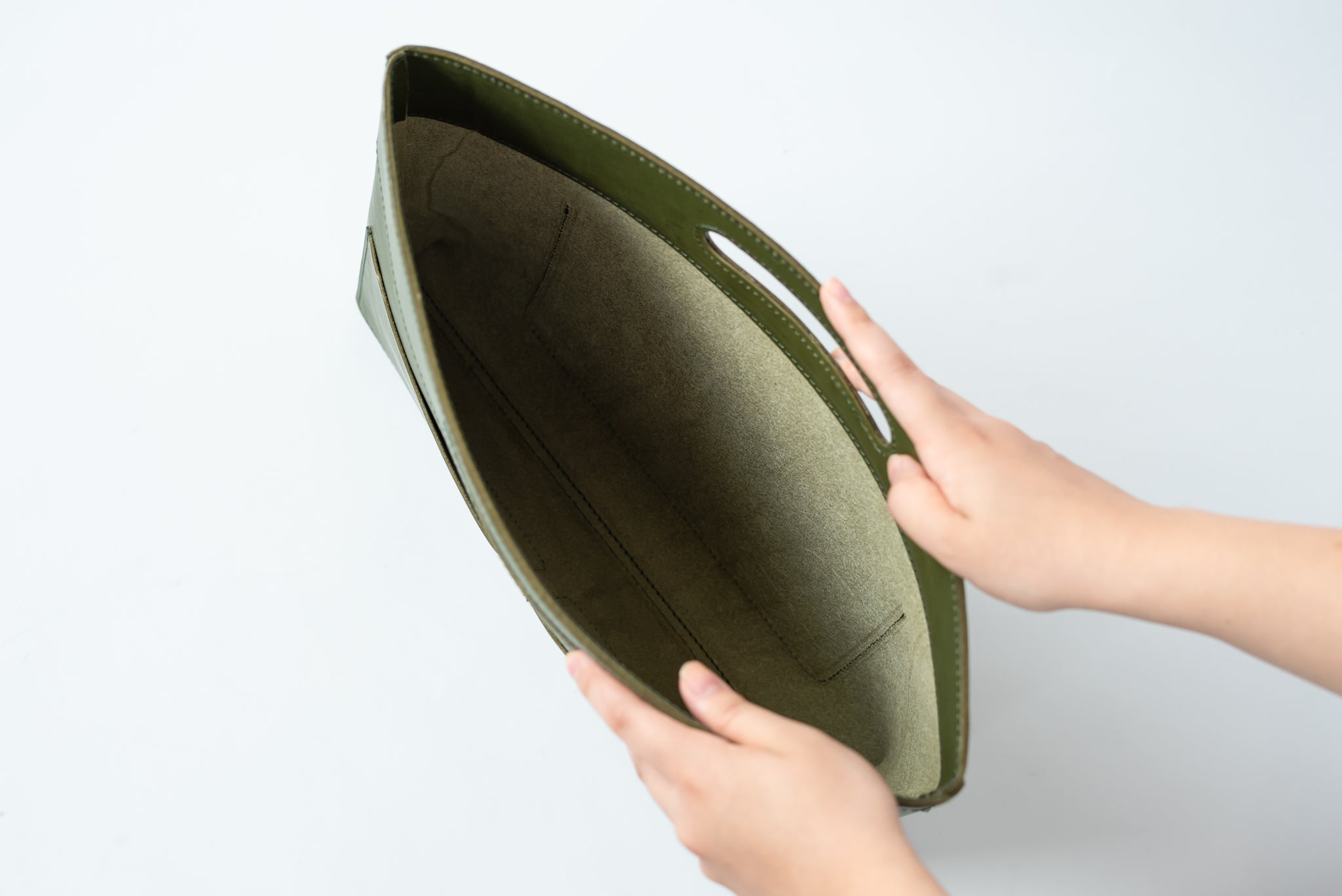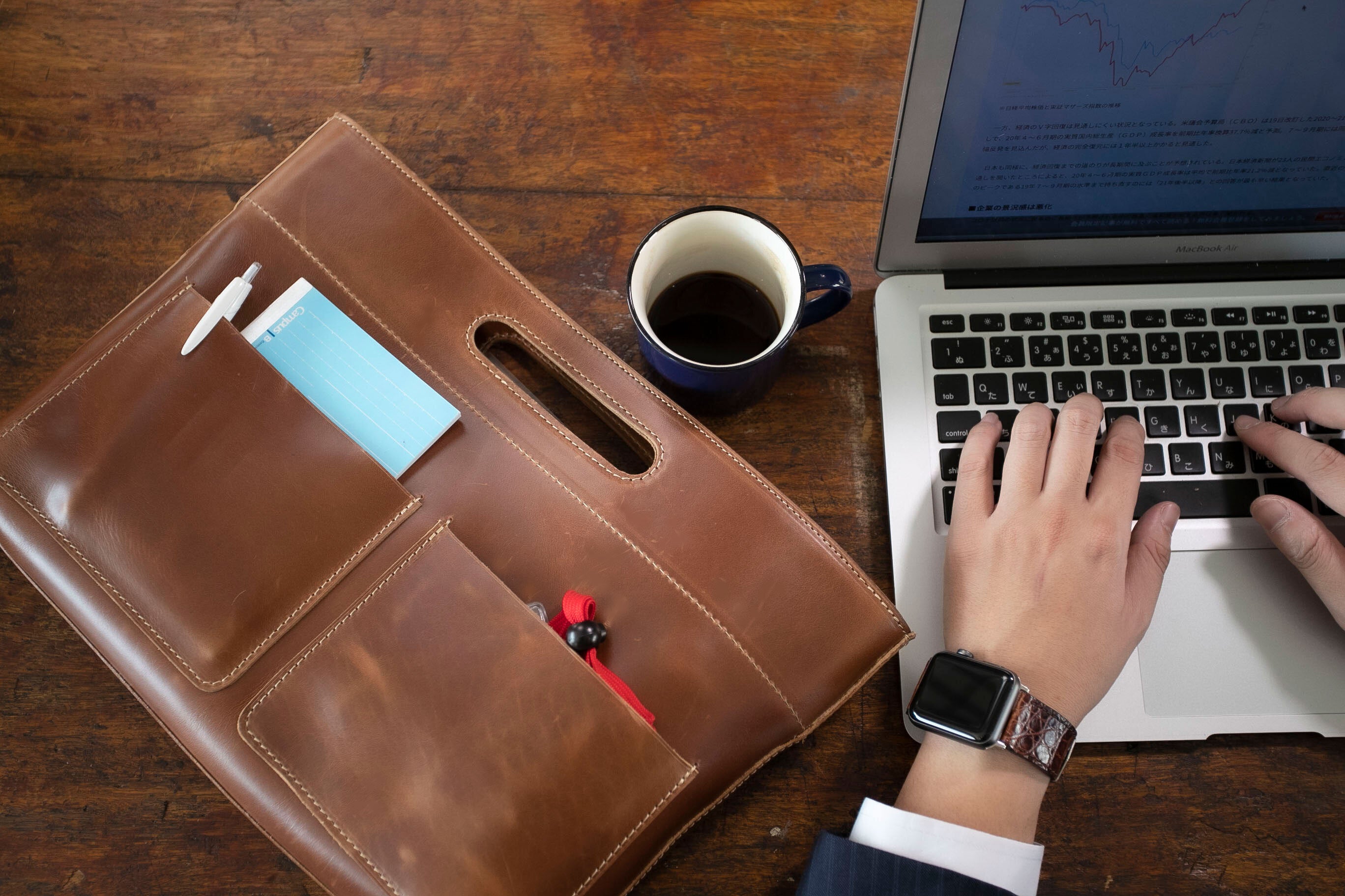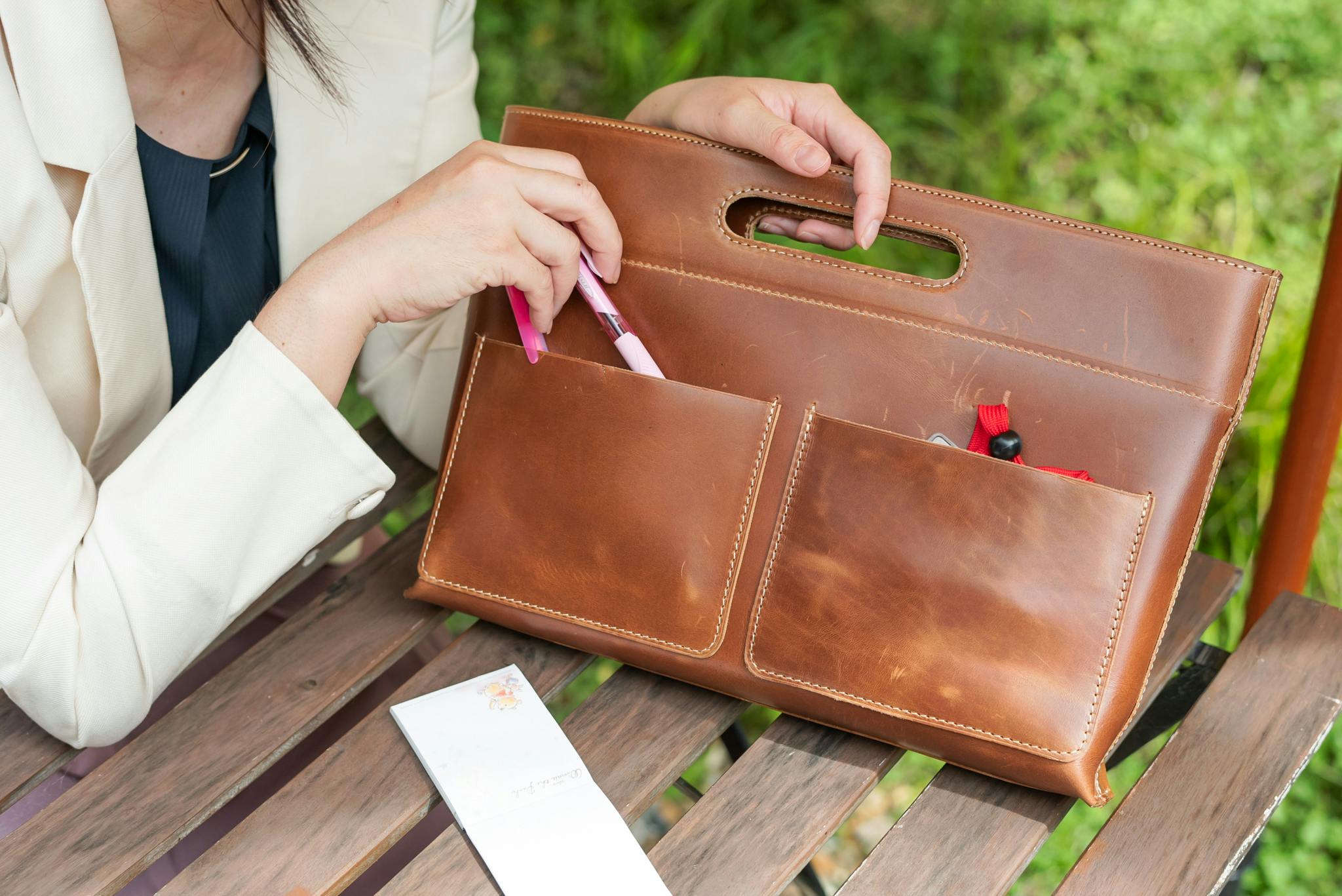 あれやこれやと専門ポケット(ペン差しポケットやスマホポケットなど)を作ろうとも考えたのですが、そうするとデザインがどうしても微妙になってしまい「出して見せたくなる」というコンセプトから大きく外れてしまいます。