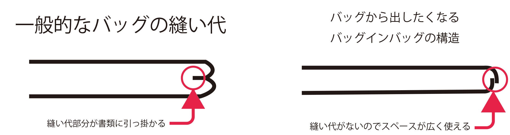 縫い代が邪魔をしないキレイに持ち運べます。