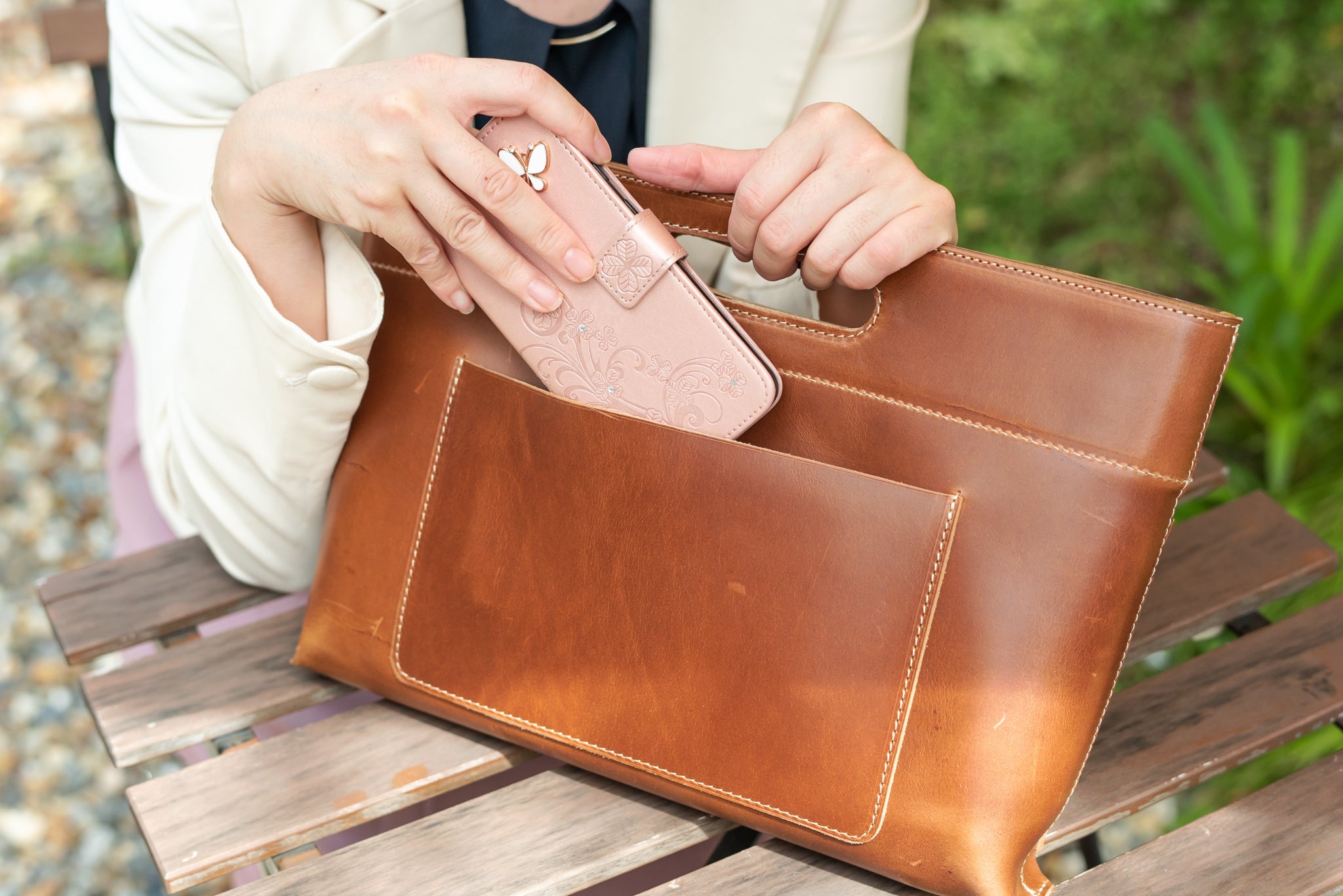 バッグから取り出せば100%植物性タンニンでなめした革独特の香りに心を奪われます。