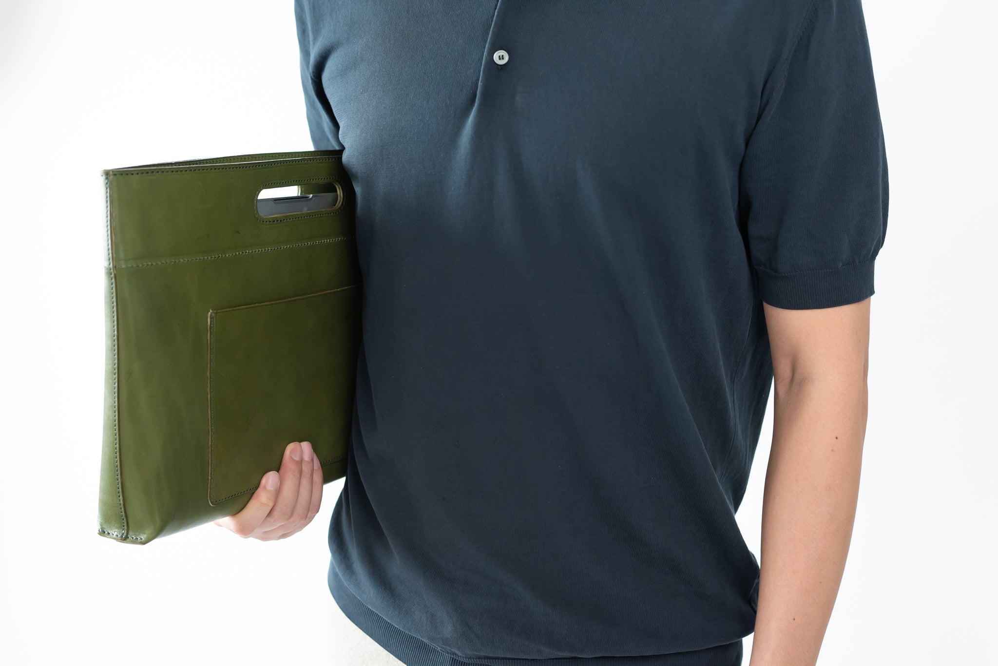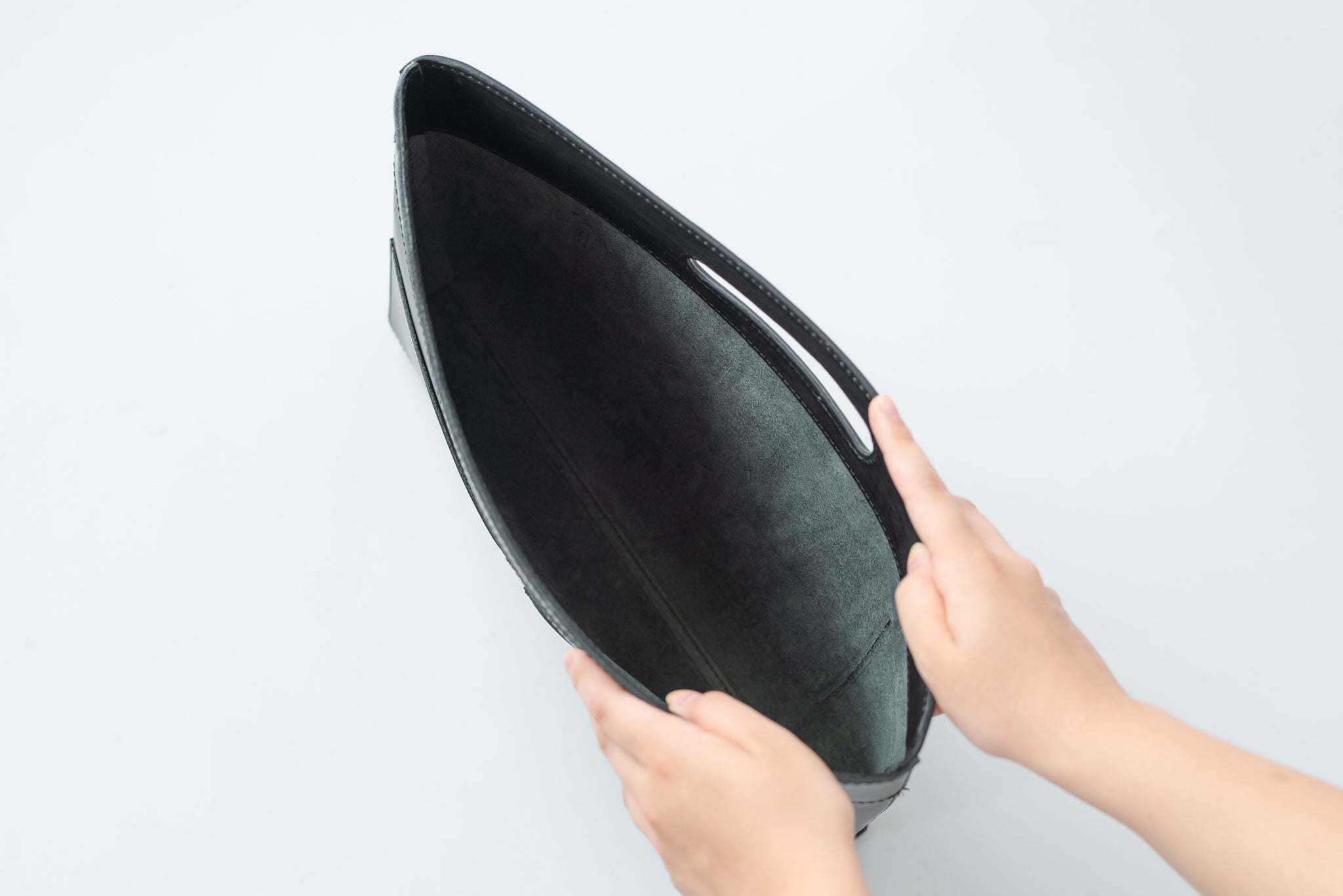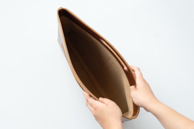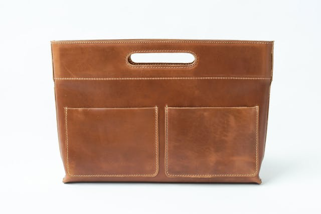 「バッグから出したくなるバッグインバッグ」は、国産の高品質なヌメ革「栃木レザー」を使用して製作しています。ちょっとした打ち合わせやランチタイムに持ち歩いてもスタイリッシュでひときわ目立つこと間違いなしです。