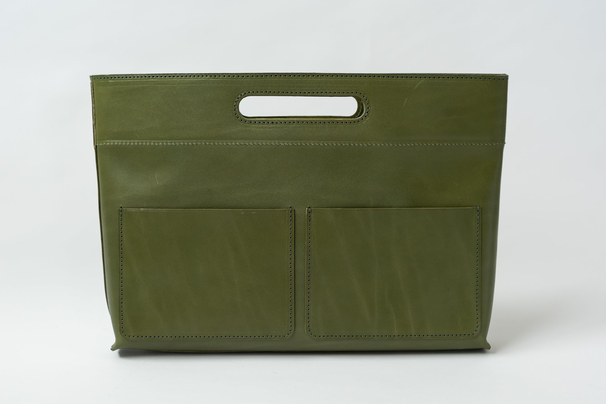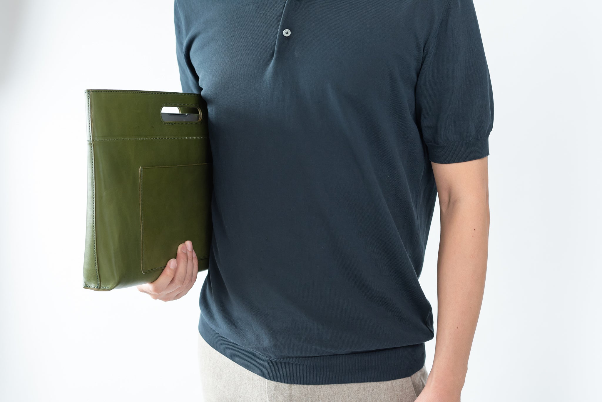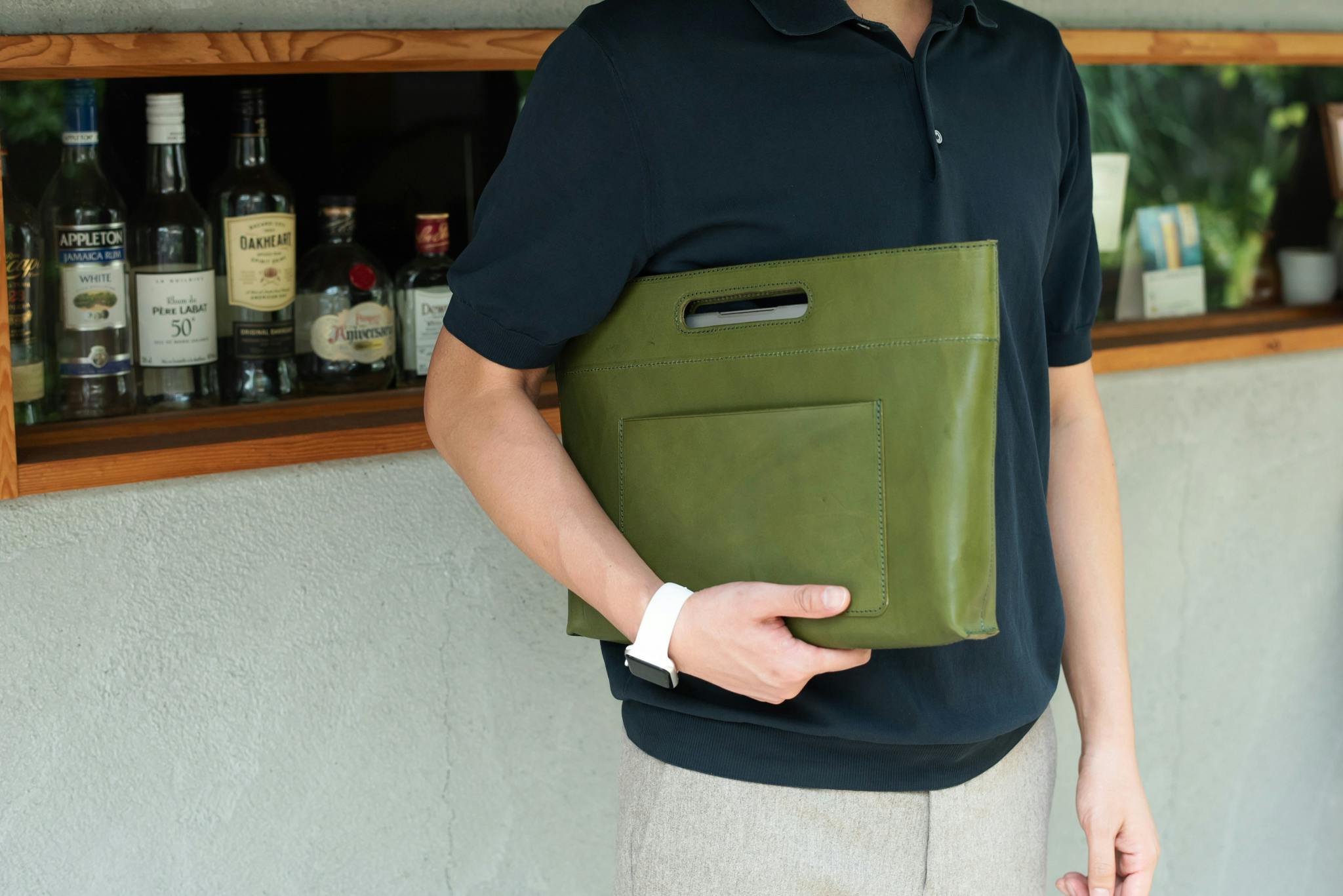 「バッグから出したくなるバッグインバッグ」は、国産の高品質なヌメ革「栃木レザー」を使用して製作しています。ちょっとした打ち合わせやランチタイムに持ち歩いてもスタイリッシュでひときわ目立つこと間違いなしです。