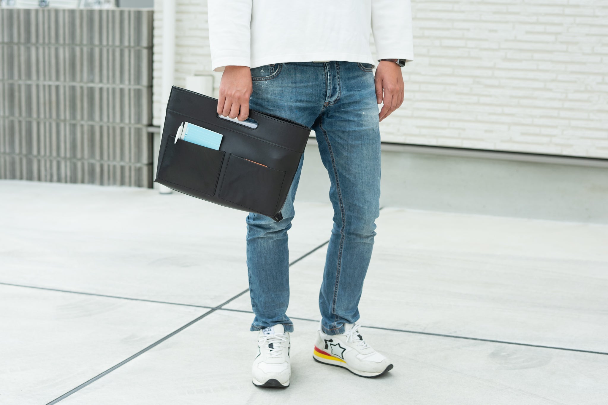 「オフィスから会議室へ移動するときや、ランチタイムでのちょっとした買い物のときに目を引くようなカッコいいバッグインバッグがなかなか見つからない。だから作ってほしい。」