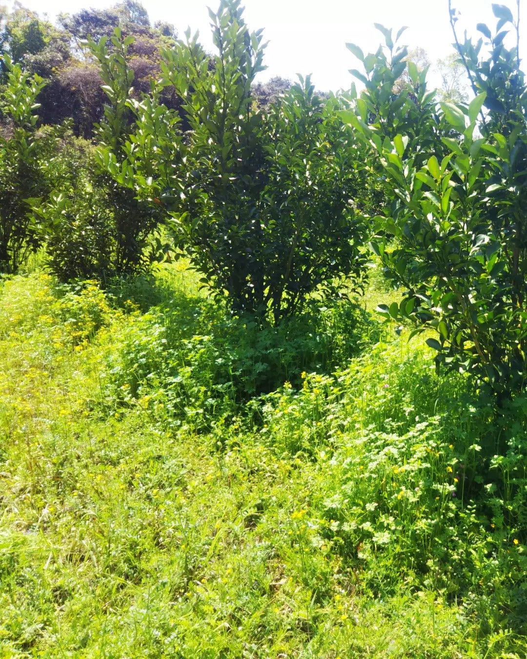 葉面散布の効き目か、樹の下の雑草の育ち方に差があるのも、これはこれでよろしい♪