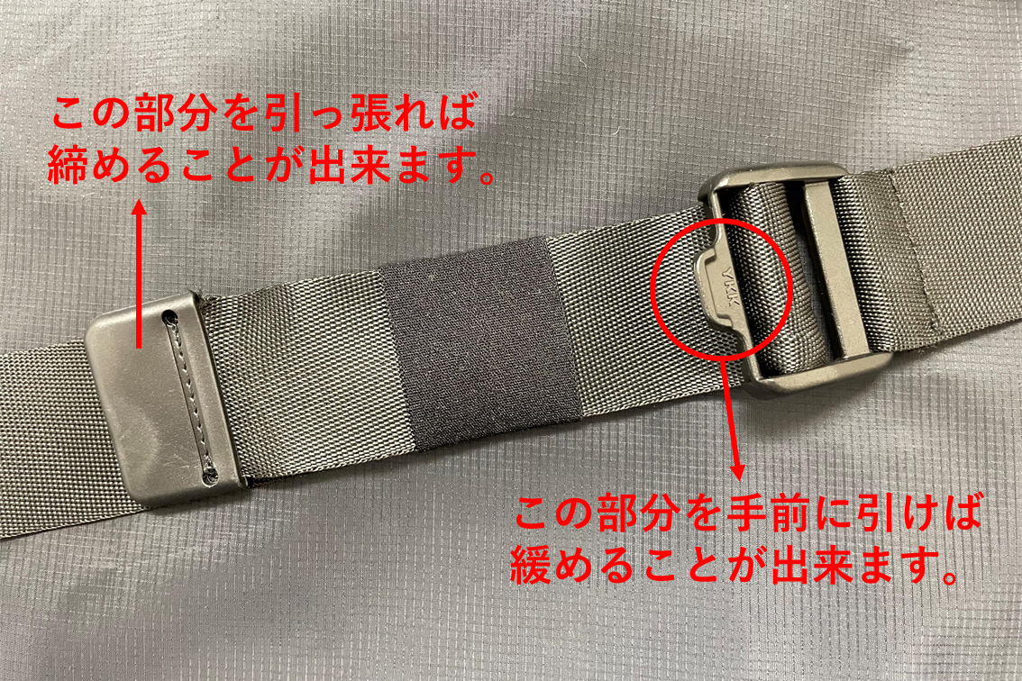 肩掛けしたまま、ショルダーストラップを斜め掛け出来る仕様です。ファスナースライダーが前側にくるように肩掛けすればショルダーストラップが正しい位置で使用出来ます。