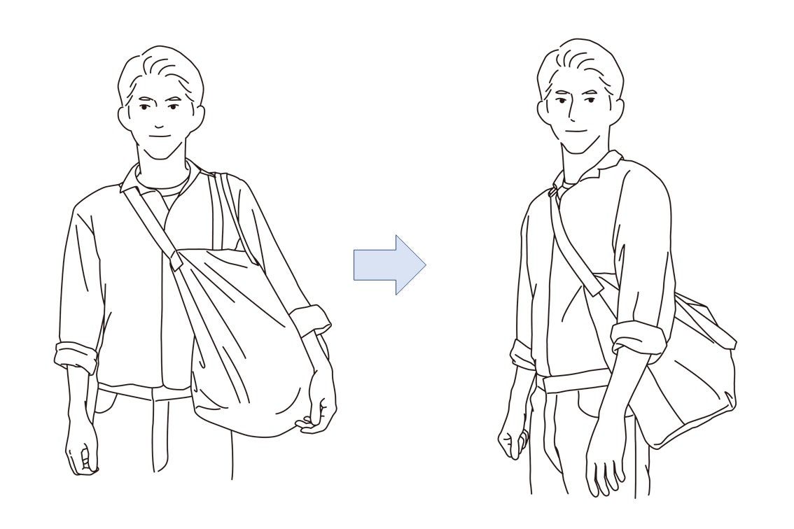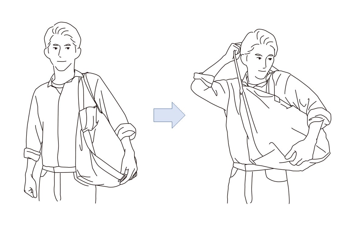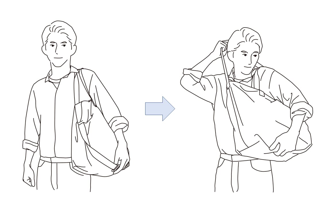 肩掛けしながら、スムーズに斜め掛けが出来る仕様!
