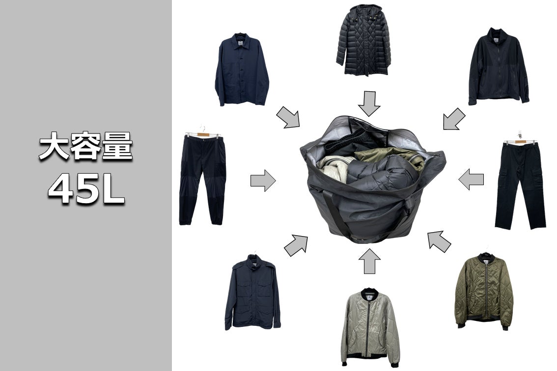 大容量45Lなのにコンパクトサイズに畳めるパッカブル仕様!