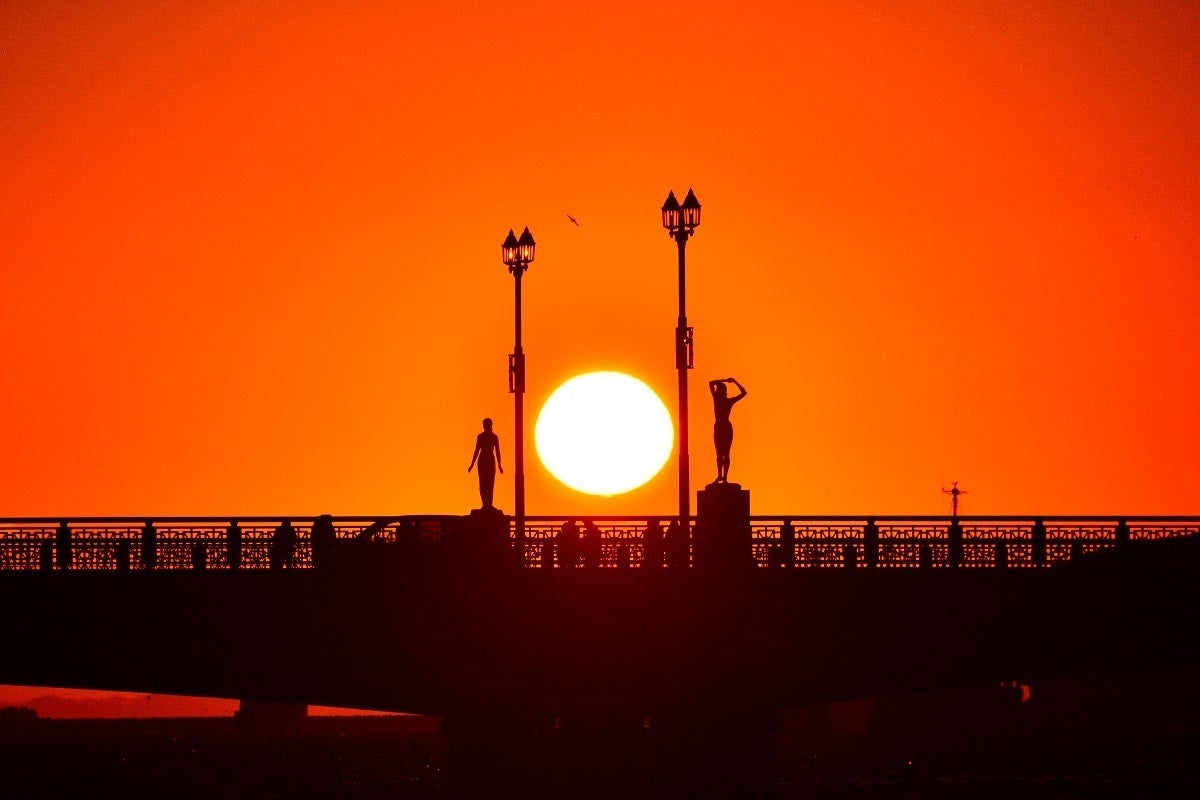 ・北海道の三大名橋「幣舞橋」から夕日を中継