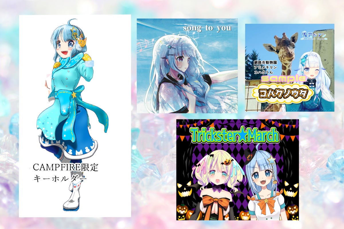これまで発売したCD2枚に、CD未発売のハロウィン曲を収録した限定CD、CAMPFIRE限定のキーホルダーのセットです。