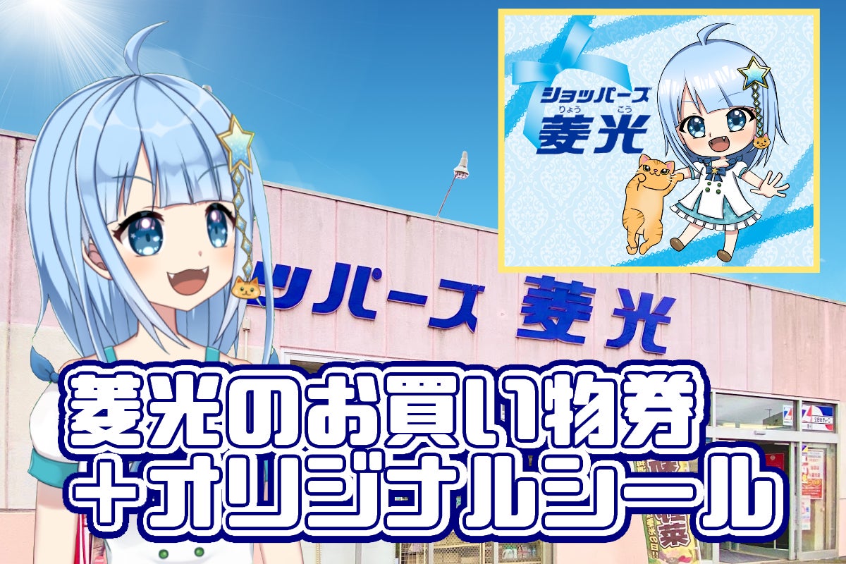 鬼霧シアンが店内ソングを歌っている、釧路のローカルスーパーマーケットショッパーズ菱光さんで使えるお買い物券(3000円分)をお送りします。デザインは鬼霧シアンオリジナルです。オリジナルコラボシールとのセットです。
