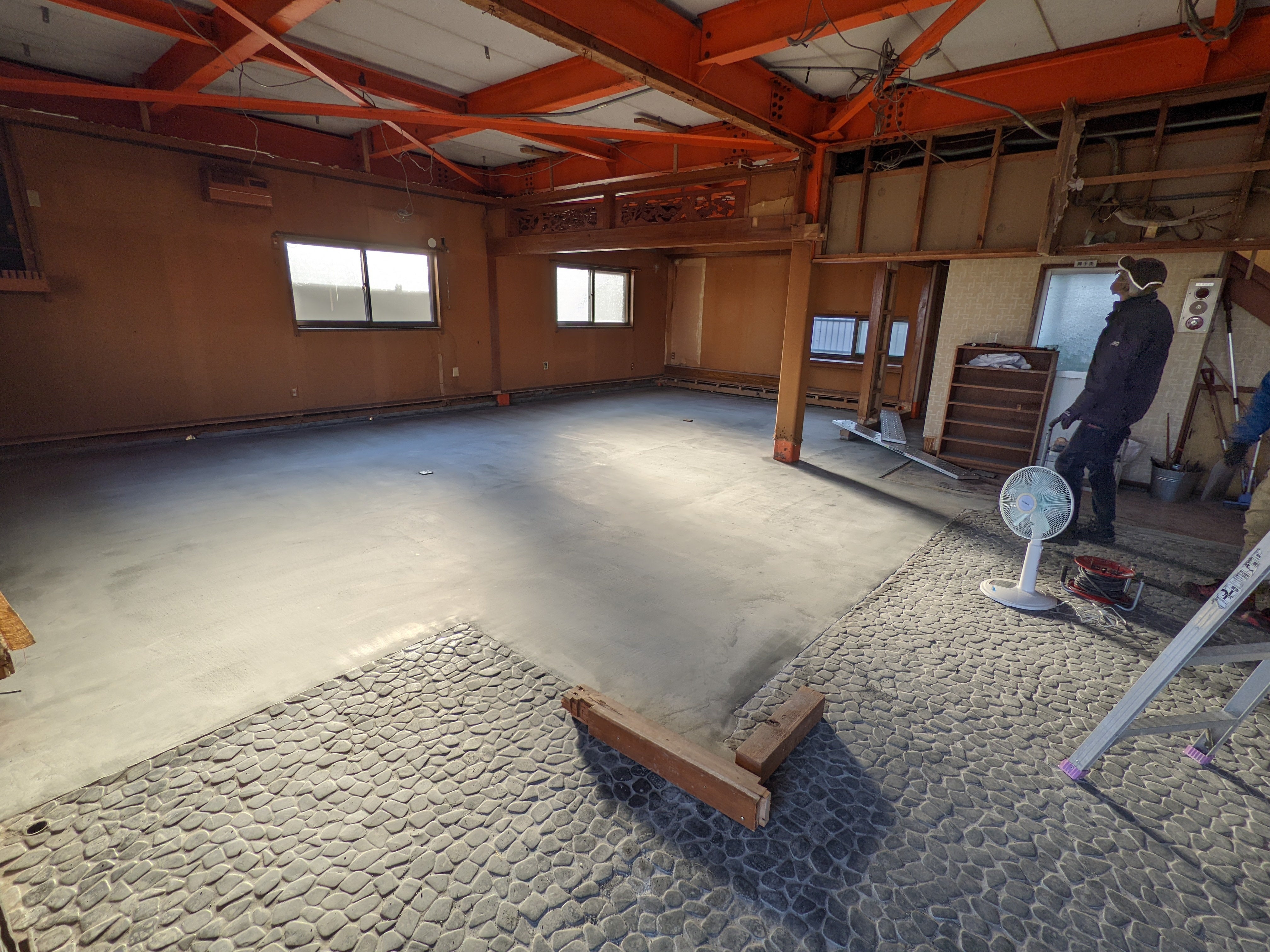 土間ができたー!!左官屋さんのプロの仕事。