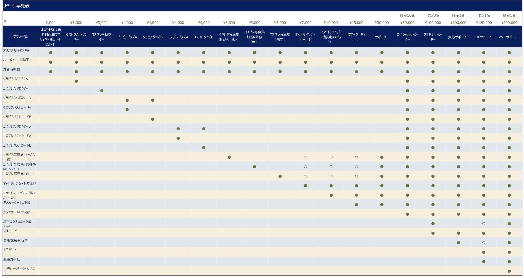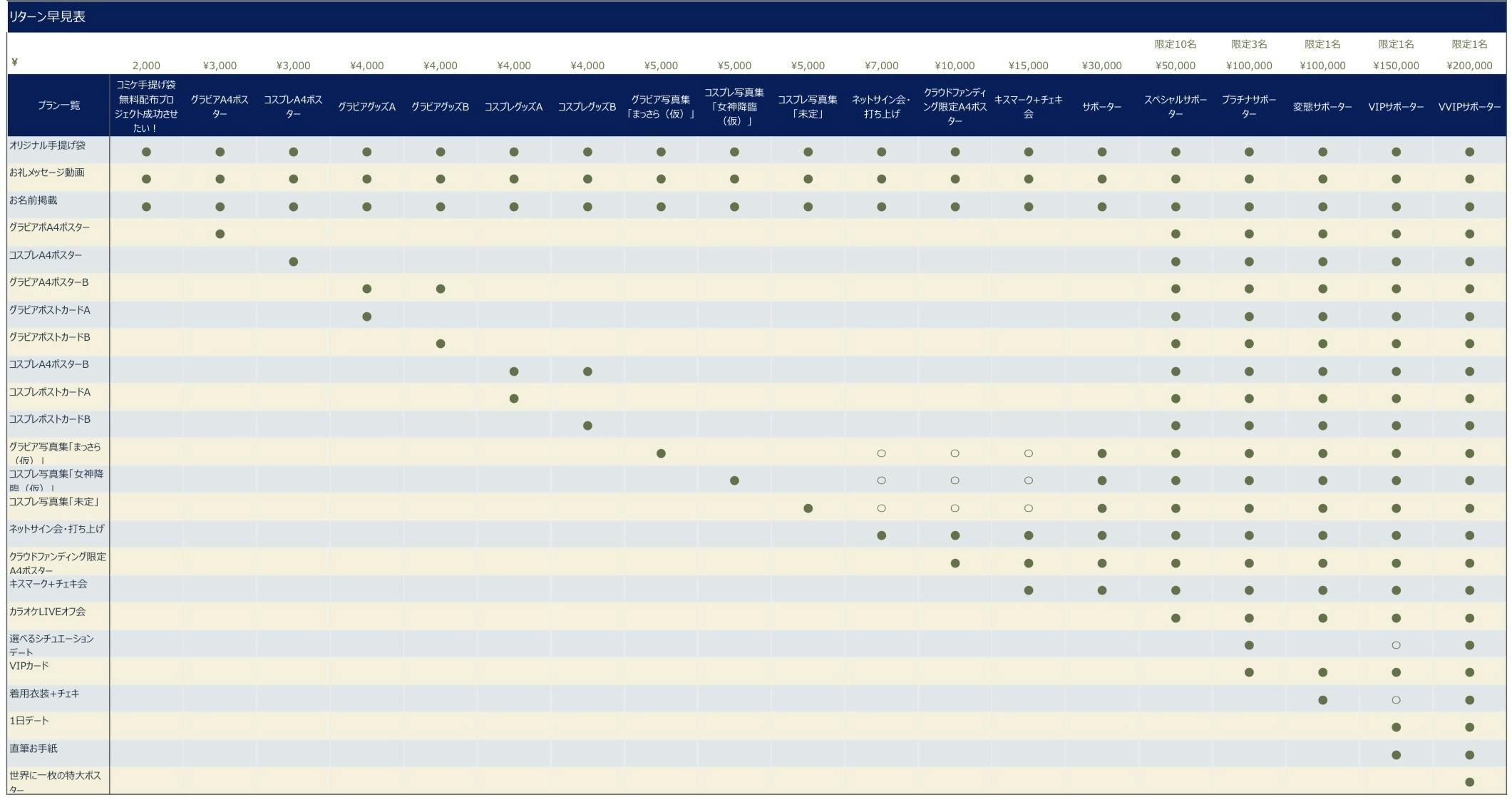 ●:リターン内容