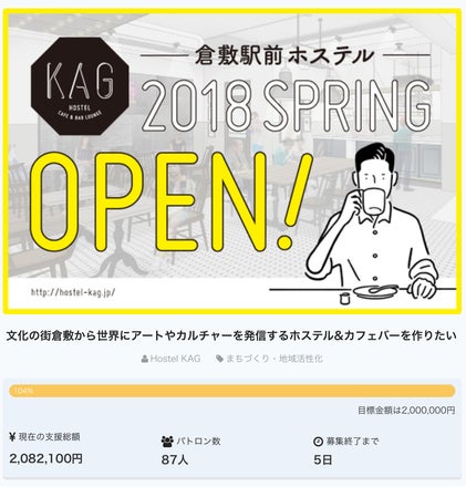 【本日最終日!】 支援期間も本日が最終日となりました! 現在、2240,100円もの温かなご支援を頂戴しております。 そして、2017年も残りわずかとなりました。 今年はクラウドファンディングプロジェクト達成というとても大きなスタートを切ることができ、パトロンの皆様をはじめ、いつも支援してくださる皆様へ心から感謝申し上げます。 今年一年、誠にありがとうございました。 来年はオープンに向け、スタッフ一同誠心誠意努力して参りますので、2018年もどうぞ宜しくお願い致します。 また、パトロンの皆様には、年始にリターンのご案内のメッセージをお送りさせていただきます。 それでは、皆様よいお年をお迎えください。