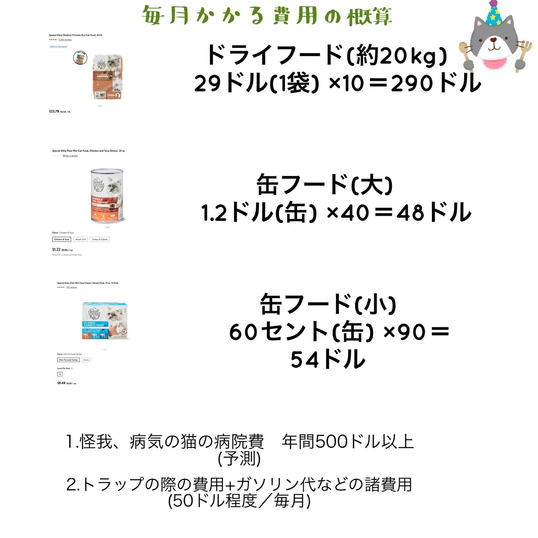 やはりコロナの影響もあり我が家の収入も激減しました。一番心配なことは猫ちゃん達のご飯代を毎月きちんと確保できるのか!?(今のところ、毎月平均500ドル程度はかかります。)
