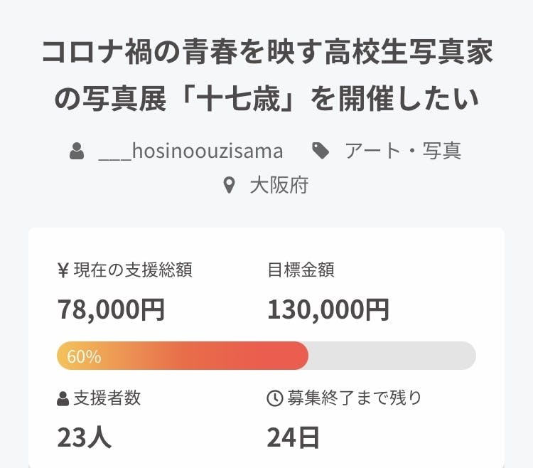 写真展を成功させるために誠心誠意頑張りますので、少しでもご支援いただければ嬉しいです。
