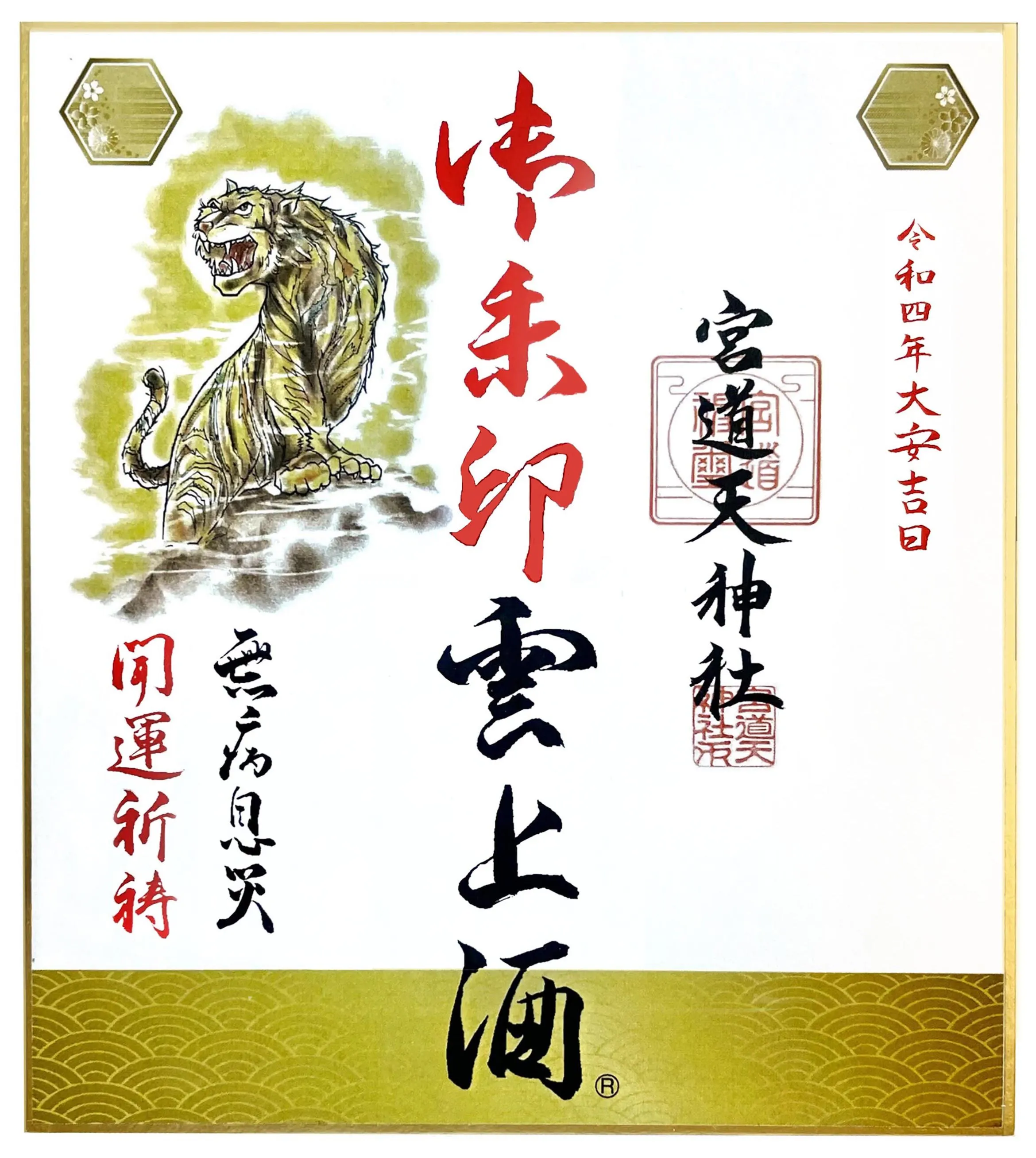 宮道天神社の御祈祷と皆様に無病息災感謝の想いを込めて干支の開運虎と御朱印雲上酒の書とパステルの虎の絵も書かせていただきました。