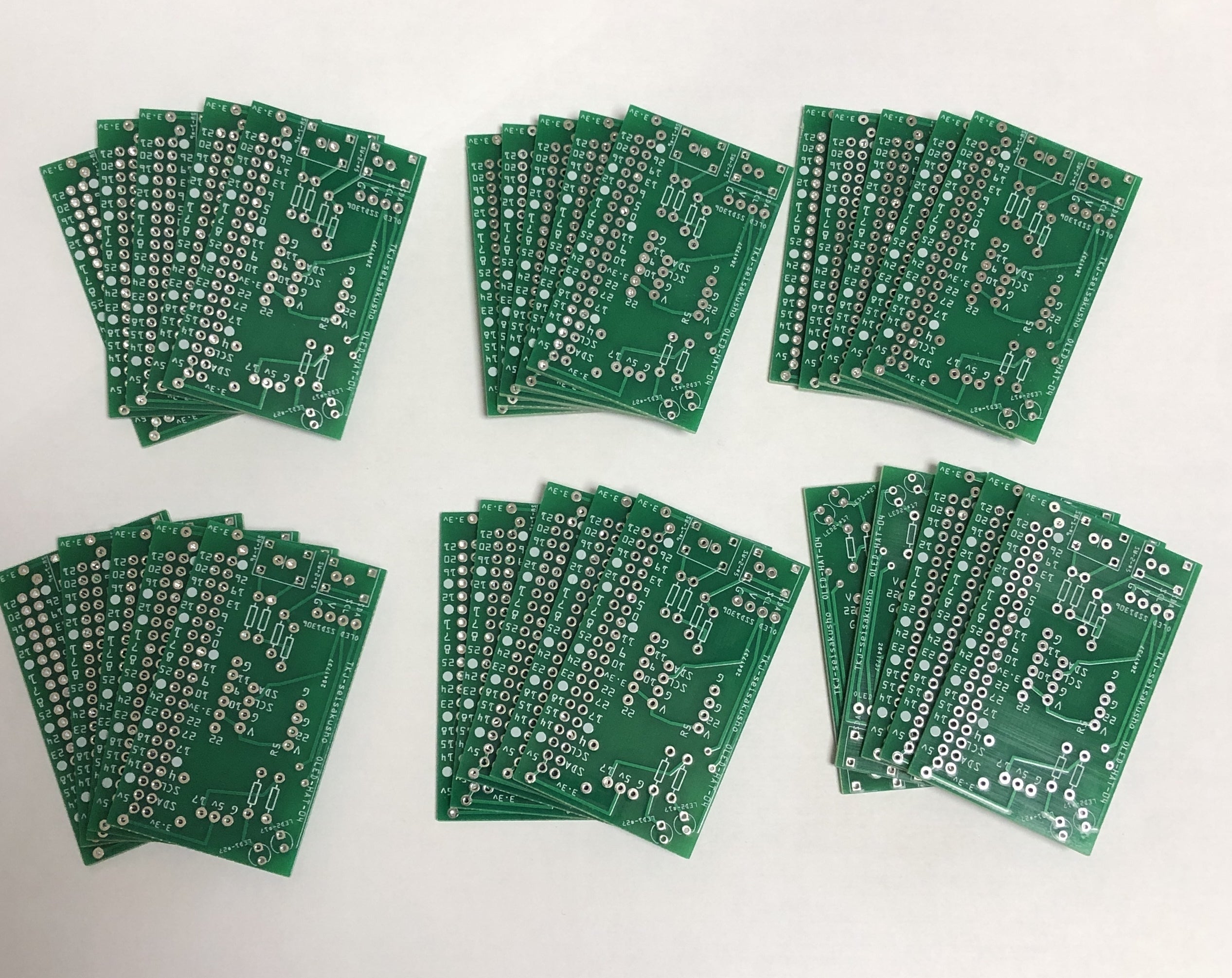 OLED表示器とスイッチ2個、LED2個を実装したテスト用のラズパイ専用HATです。ブレッドボードで何か作ろうとしたときに、最低限のUIが必要ですが、それらもブレッドボード上に作るのは面倒です。最低限のUIを備えたこの基板があれば、作るべき物だけに集中できるので、作業がはかどります。