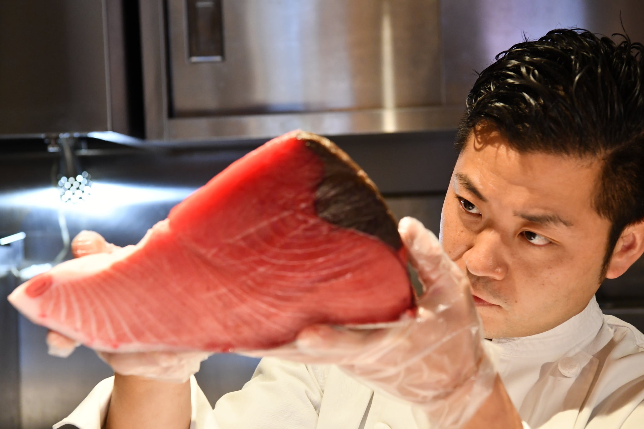 そこでこの生マグロの美味しさを、より多くの人に伝えたいという想いから鮪達人天神店が誕生しました。マグロ解体ショーに参加できるお客様は限られていますので、飲食店を運営する事で沢山のお客様に鮪達人の生マグロをご堪能して貰えるよう日々マグロ料理の研究・開発に取り組んでおります。